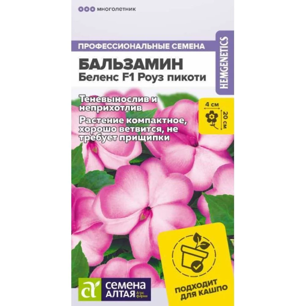 Бальзамин Беленс F1 - многолетнее компактное растение, идеально подходящее для выращивания в горшечной, контейнерной культуре, в открытом грунте выращивается, как летник. Высота растения в горшке 15-20 см, в открытом грунте – 20-25 см. Ширина кустика 25-30 см. На сочных мясистых стеблях расположены удлиненно-эллиптические листья приятной зеленой окраски. Очаровательные простые цветки достаточно крупные, в диаметре 2-3 см. В помещениях цветет весь год при температуре не ниже +16°С. Широко используют для украшения клумб, цветников, рабаток, бордюров, подвесных корзин, контейнеров, вазонов. Растение теплолюбивое, в открытом грунте при наступлении холодных ночей увядает. Предпочитает слегка затененные места в саду или комнате. Не выносит переувлажнения. Посевы на рассаду проводят в конце февраля - марте. Подойдет любая хорошо дренированная почва. Сеют поверхностно, не заделывая - для прорастания семенам нужен свет. Для получения наилучшего результата посев рекомендуем проводить в торфяные таблетки (одно семя в таблетку). Посевы увлажняют, накрывают стеклом (до появления всходов), периодически проветривая, и помещают в светлое место, избегая попадания прямых солнечных лучей. При температуре +23°С всходы появляются через 2-3 недели. После появления первых петелек температуру снижают, днем нужно поддерживать +18°C, а ночью +16°C. На данном этапе рассада нуждается в хорошем освещении, необходимая длина светового дня – не менее 12-14 часов, поэтому растения нужно досвечивать фитолампами. После появления 2-х настоящих листиков сеянцы пикируют в отдельные горшки, обеспечив дренаж. Делают это аккуратно, чтобы не повредить корни растений. В открытый грунт рассаду высаживают в мае-июне, когда минует угроза весенних заморозков, посадочный интервал 25-30 см. Цветение обильное и продолжительное, с июня до осенних холодов.