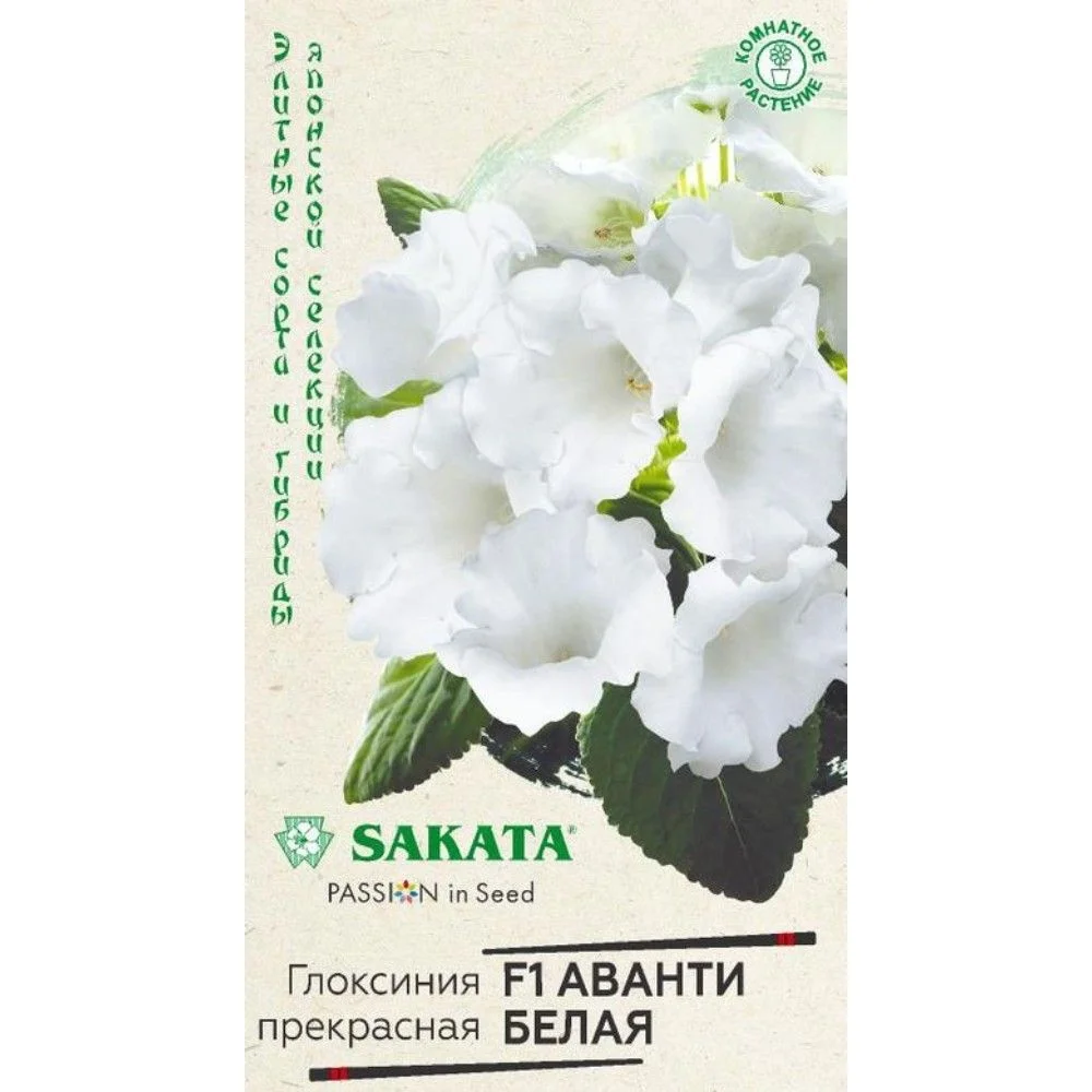 Роскошное и очень модное среди цветоводов комнатное растение из семейства Геснериевые. Самая рано зацветающая серия среди немахровых глоксиний. Цветки колокольчатой формы, белые с темной серединой, с приятной бархатистой поверхностью венчают длинные цветоносы. Широкоовальные листья на коротких черешках украшают основание цветоноса. На взрослом растении образуется 10-15 крупных цветков, создавая впечатление нарядного букета. Глоксиния предпочитает светлые, солнечные места без воздействия прямых солнечных лучей. Идеальная температура для роста — 20°С - 25°С днем и 18°С – 22°С ночью. Во время цветения необходим обильный полив, еженедельные подкормки, влажный воздух (опрыскивание из пульверизатора). В октябре-ноябре, после цветения, полив и подкормку прекращают. Когда листья глоксинии засохнут, клубни вынимают из почвы и помещают на хранение в неглубокие ящички с чуть влажным песком или перлитом, которые устанавливают в помещении с температурой 10-12°С. После периода покоя (примерно 90 дней) клубни дадут новые ростки и их снова можно будет пересаживать в горшок. Семена на рассаду высевают поверх субстрата (не заделывая в почву) с февраля по март, накрывают стеклом и ставят в теплое, светлое место. Всходы появляются при температуре 22-24°С, через 10-14 дней. В фазе 3-х листьев растения пикируют, через месяц рассаживают в отдельные горшки. Зацветает глоксиния, выращенная из семян через 9-10 месяцев.
