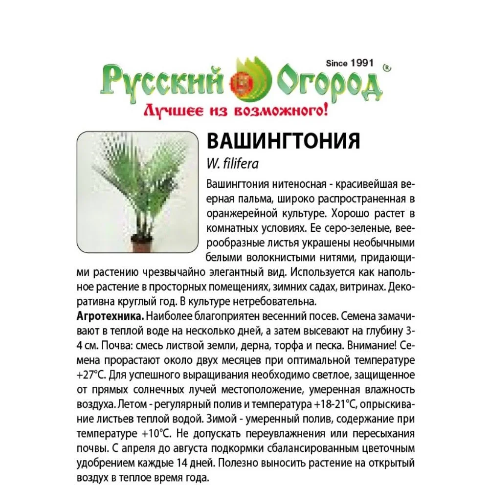 Эта красивая веерная пальма хорошо растет в комнатных условиях. Ее серо-зеленые листья, украшенные белыми нитями, придают растению чрезвычайно элегантный вид. Для успешного выращивания необходимо светлое помещение, умеренный полив. Внимание! Семена прорастают около двух месяцев.