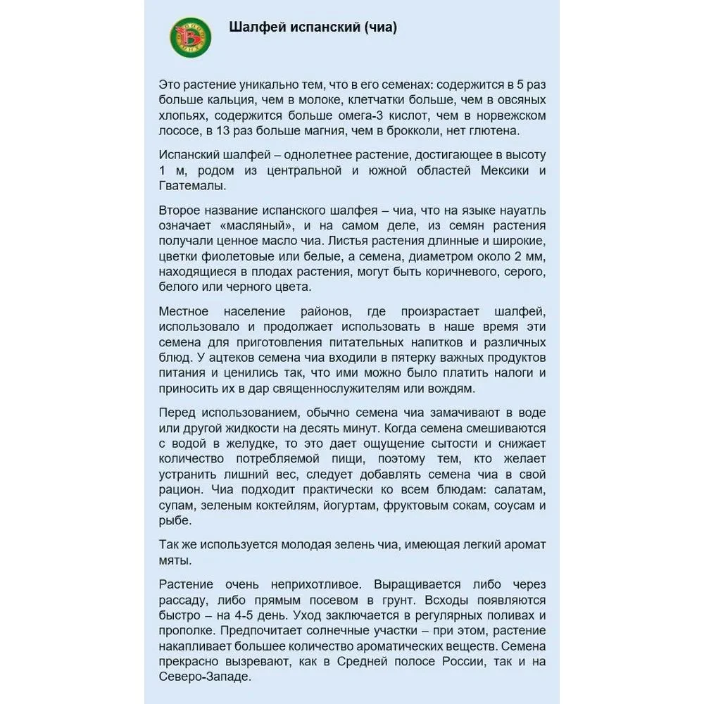 Шалфей испанский (чиа)