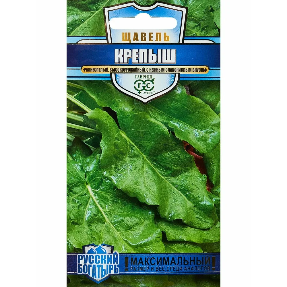 Раннеспелый, высокоурожайный сорт Крепыш порадует сочной зеленью через 50 дней. Розетка листьев прямостоячая. Лист длинный, широкоэллиптический, светло-зеленый, слабоморщинистый, со слабокислым вкусом. Черешок короткий. Масса одного растения — 110 г. Быстро отрастает после срезки. Растение неприхотливое, холодостойкое, одним из первых радует своей свежей зеленью. Сорт устойчив к стеблеванию. На одном месте может расти 5-6 лет. Кисловатые листья щавеля добавляют в супы и борщи, в салаты, начинки для пирогов, а еще маринуют, консервируют и сушат. Посев проводят в апреле-мае. Для получения ранней продукции возможны подзимние посевы. Щавель содержит витамины и органические кислоты, вкусные и полезные, способен улучшить пищеварение, нормализовать работу желчного пузыря и печени. Урожайность до 5,0 кг/кв.м.