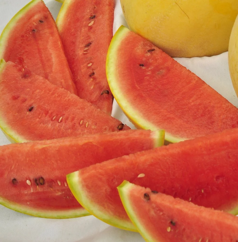 Арбузная ягода, особенно в Подмосковном огороде, уже чудо. А если арбуз еще и с жёлтой корой, то это - Жёлтое чудо! Раннеспелый гибрид принесет плоды уже через 70-75 дней после посева. Короткоовальные, с красивой и прочной ярко-жёлтой корой без полос. Издали арбуз вполне можно принять за дыню. Средняя масса до 3,5 кг. Мякоть насыщенно-красная, очень сочная и сладкая. Содержание сахаров до 11%. Замечательный свежий и сладкий десерт для всей семьи! Семена небольшие. Растения сильнорослые.