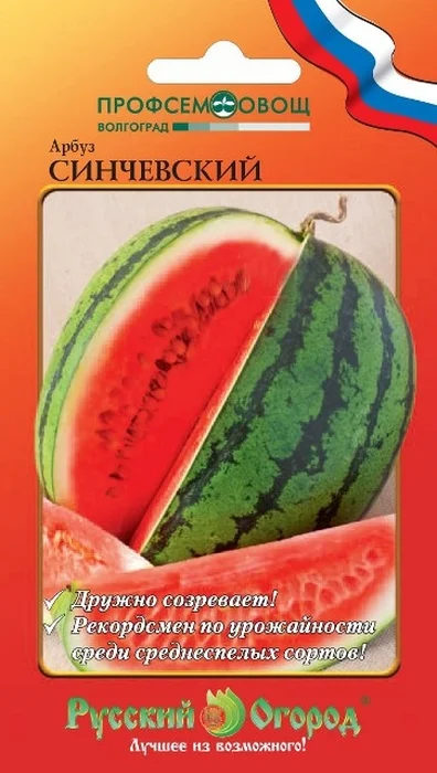 Крупные плоды классической шаровидной формы с сочной сладкой мякотью. Среднеспелый сорт (85-90 дней) с товарными плодами массой до 18 кг! Товарная урожайность до 3 кг/м.кв. Кора светло-зелёная, гладкая, с шиповатыми тёмно-зелёными полосками, разрез светло-зелёный. Мякоть ярко-малинового оттенка, крупнозернистая, сочная,нежная и сладкая! Вкус отличный. Растения длинноплетистые. Средневосприимчивы к фузариозному увяданию, мучнистой росе, антракнозу, бактериозу.