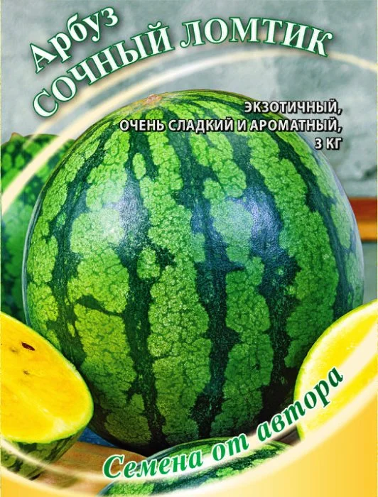 Ранний сорт с сахарной желтой мякотью, насыщенным арбузным ароматом и вкусом в котором улавливаются нотки тропических фруктов. Подходит для выращивания в открытом грунте в средней полосе и на юге России. Через 72-87 дней на растении созревают практически бессемянные овальные плоды массой 3 кг. Сорт урожаен, неприхотлив, плоды хорошо хранятся. Посев на рассаду производят в конце апреля. Высадку рассады в грунт — в конце мая – начале июня в возрасте 30-35 дней. Растения подвязывают к шпалере (до высоты 50 см), удаляют все боковые побеги, последующие прищипывают над 1-3 листом или выращивают врасстил.