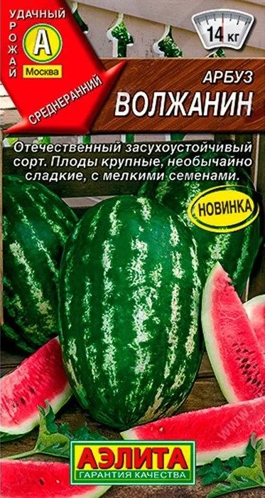 Проверенный временем, отечественный сорт.Среднеранний: урожай созревает через 85-95 дней после появления всходов. Растения крепкие, главная плеть длинная. Плоды удлиненно-овальные, крупные, массой 9-14 кг. Мякоть красновато-розовая, зернистая, очень сладкая и сочная (содержание сахара достигает 13%). Семена мелкие. Сорт засухоустойчивый, предназначен для открытого грунта южных регионов и теплиц средней полосы. Плоды отлично хранятся и транспортируются.При выращивании в теплицах растения подвязывают и формируют в один стебель. Все нижние боковые побеги подвязывают к шпалере, последующие – прищипывают после третьего листа. По мере роста завязей их необходимо подвязать или аккуратно зафиксировать сеточным материалом. В о/г на растении оставляют первые 3-4 завязи, затем верхушку прищипывают.