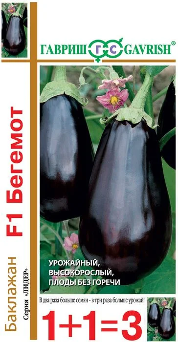 Среднеспелый (100-110 дней от всходов до плодоношения) высокорослый (0,7-1,5 м в пленочных теплицах, до 2,5 м в остекленных теплицах) гибрид для пленочных и остекленных теплиц. Плоды грушевидной формы, длиной 14-18 см, диаметром 4,5-8,0 см, темно-фиолетовой окраски, с глянцевой поверхностью, массой 250-350 г. Мякоть средней плотности, желтовато-белая, без горечи. Урожайность одного растения 1,8-2,5 кг, до 6 кг в зависимости от условий. Посев на рассаду производят в конце февраля. Пикировку — в фазе семядолей. Высадку рассады в пленочные теплицы — в конце мая в возрасте 50-60 дней. Формировка: удаление всех боковых побегов и листьев до первой развилки. К концу июля на растении оставляют 5-6 самых крупных завязей, другие цветы и завязи удаляют. Схема посадки: 40х60 см.