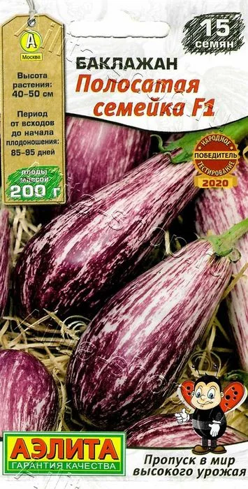 Новый гибрид из группы Stripe (Полосатые) для выращивания в теплицах. За рубежом такие баклажаны называют «зебрами» и ценят за высокое качество плодов и сладковатый, особо нежный вкус. Гибрид раннеспелый, вступает в плодоношение через 85-95 дней от всходов. Растения высотой 90-120 см, раскидистые. Гибрид устойчив к опадению цветков в условиях тепличной жары. Плодоношение кистевое. Завязи формируются пучками по 2-4 шт. Плоды Ø 8-10 см и до 20 см длиной, массой 150-200 г. Кожица тонкая. Белоснежная малосемянная мякоть никогда не горчит. Кроме высоких вкусовых качеств, плоды обладают рядом лечебных свойств и считаются «овощем долголетия». Плоды не следует передерживать на растении. Урожайность 7-8 кг/м 2 .