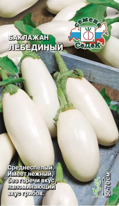 Среднеспелый (110-116 дней) сорт для открытого грунта, пленочных теплиц и укрытий. Растение высотой 50-70 см. Плоды удлиненно-грушевидные, белые,  массой 200-250 г, с тонкой кожицей. Мякоть снежно-белая, плотная, без горечи, с нежным грибным ароматом. Ценность сорта: устойчивость к заболеваниям и изменениям температуры, жаростойкость, стабильная урожайность, отличные вкусовые качества. Рекомендуется для запекания, маринования, соления, приготовления икры.