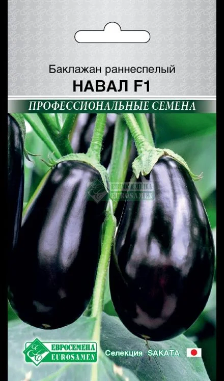 «Навал»- это новый ранний гибрид баклажана с ценными хозяйственными характеристиками от компании Sakata. Растение сильное, мощное, с развитым листовым аппаратом, дающее до 14 плодов (массой от 400 г. до 1 кг) за период плодоношения. Плоды каплевидной формы (20-25 см в длину и 10 см в ширину) высокого качества: твёрдые, тяжёлые, тёмно-фиолетового цвета с глянцевым отливом. Цвет мякоти белый, однородный. Твёрдая мякоть и кожура делают плоды устойчивыми к повреждениям при уборке и обеспечивают отличную способность к перевозке и хранению. Гибрид предназначен для потребления в свежем виде, рекомендуется как для открытого грунта, так и для плёночных теплиц. Отличается медленным формированием семян (их мало), рекордными показателями урожая и высоким качеством товарной продукции.
