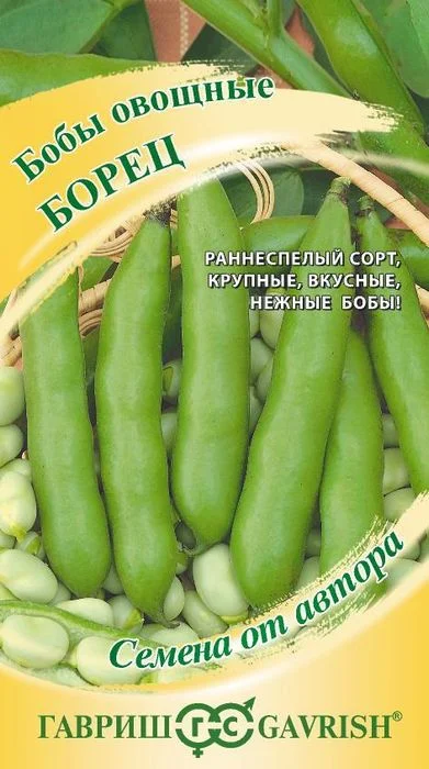 Сегодня нечасто встретишь на обеденном столе блюдо из бобов. Этот незаслуженно забытый овощ обладает высокой пищевой ценностью. По содержанию белка может соперничать с мясом и вполне заменить его в рационе человека. Их перетирают в муку и используют для приготовления приправ и соусов. Одним из известных сортов овощных бобов авторской селекции «Гавриш» являются бобы Бобчинские. Это среднеранний (60-65дней от полных всходов до технической спелости), сахарный сорт. Высота растения до 60 см, на растении завязывается от 7 до 15 бобов. Бобы прямые или слегка изогнуты, чаще 3 семенные, длиной 6-8 см, диаметром 1,5-2,0 см, не растрескиваются. Створки мясистые, нежные, сахаристые. Посев в открытый грунт проводится в конце апреля-начале мая, на глубину 5 см. Схема посева: 20x60 см.