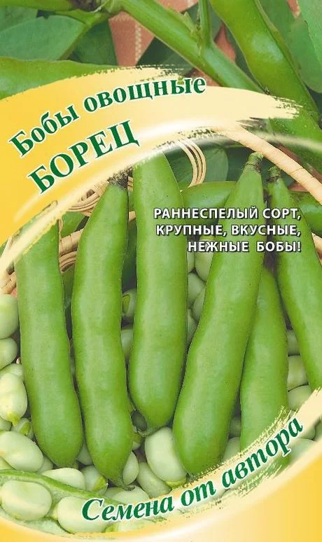 Раннеспелый (60-65дней от полных всходов до технической спелости) сорт. Растение низкорослое высотой 60 см, завязывает от 7 до 15 бобов. Бобы крупные, без черного рубчика, зеленого цвета, прямые или немного изогнутые. Длина 6-8 см.Не растрескиваются. Створки мясистые, нежные, сахаристые. Бобы рекомендуются для различных вегетарианских блюд, домашних заготовок, супов, гарниров к мясу, замораживания. Содержат много растительного белка, что является большой пищевой ценностью. Посев в открытый грунт проводится в конце апреля-начале мая, на глубину 5 см. Схема посева: 20x60 см