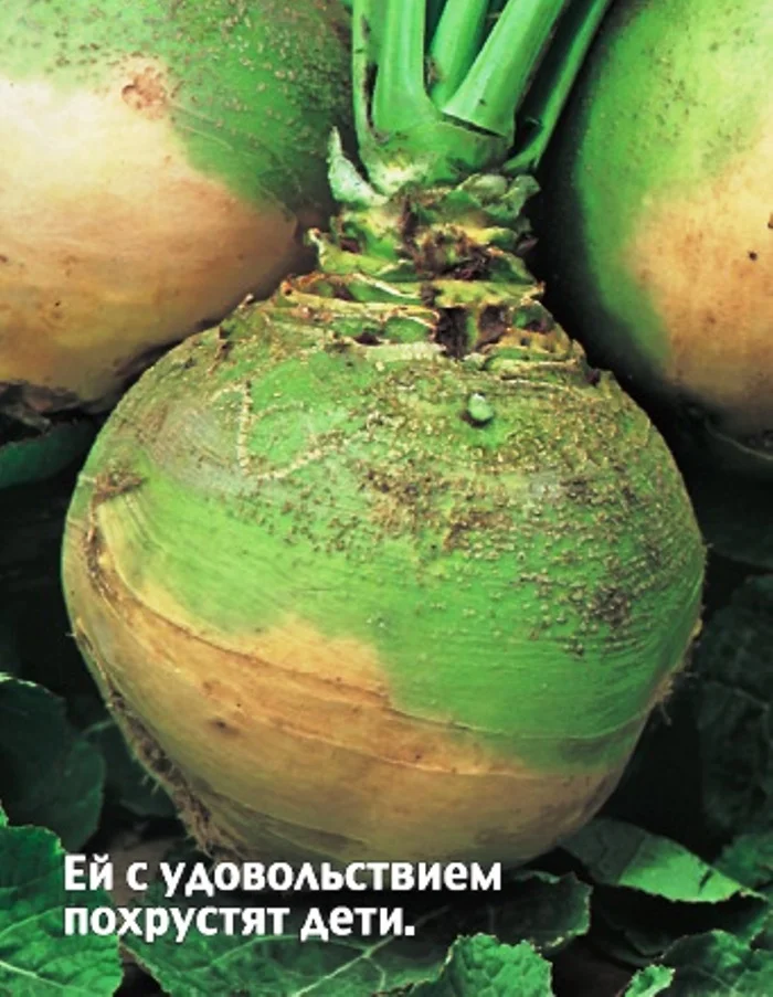 Среднеранний (от всходов до технической спелости 90-115 дней) сорт. Корнеплод округло-овальный, сужающийся книзу, светло-желтый с серо-зеленой головкой, массой 300-500 г. Мякоть кремово-желтая, сочная. Ценность сорта: отлично хранится в зимний период, высокое содержание витаминов, минеральных солей и микроэлементов. Используется, как витаминное, мочегонное, антисептическое, обезболивающее, разжижающее мокроту, ранозаживляющее средство. Рекомендуется для употребления в свежем, вареном и пареном виде.