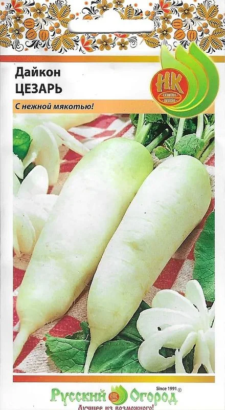 Поверхность белая, ровная. Мякоть сочная, нежная, без острого редечного вкуса. Употребляется в свежем виде.
