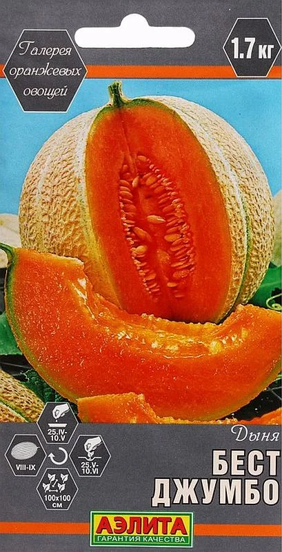 Овощи самых разных окрасок украшают любое застолье.Оранжевые – это настоящая бомба из витамина С и каротина, который в организме превращается в провитамин А. Добавляйте их в рацион питания и они укрепят ваш иммунитет. Оранжевый – цвет радости, оптимизма и здоровья!Восхитительно сладкий и ароматный сорт с оранжевой мякотью. Среднеспелый, урожай начинают убирать на 90-100 день после всходов. Плоды массой 1,5-1,7 кг, с тонкой кожицей. Мякоть cочная, тающая, с медовым послевкусием. Отличается повышенным содержанием бета-каротина, что и придает ей такой яркий цвет. Это вкусное и полезное летнее лакомство для детей и взрослых. Также из этой дыни можно приготовить цукаты, варенье и повидло. Сорт устойчив к комплексу заболеваний, хорошо транспортируется.В зоне рискованного земледелия рекомендуется выращивать в з/г, подвязывая плети к шпалере. Когда завязь достигает размера грецкого ореха, точку роста над ней прищипывают, оставив 1 лист. В средней полосе получают 4-5 дынь с каждого растения.