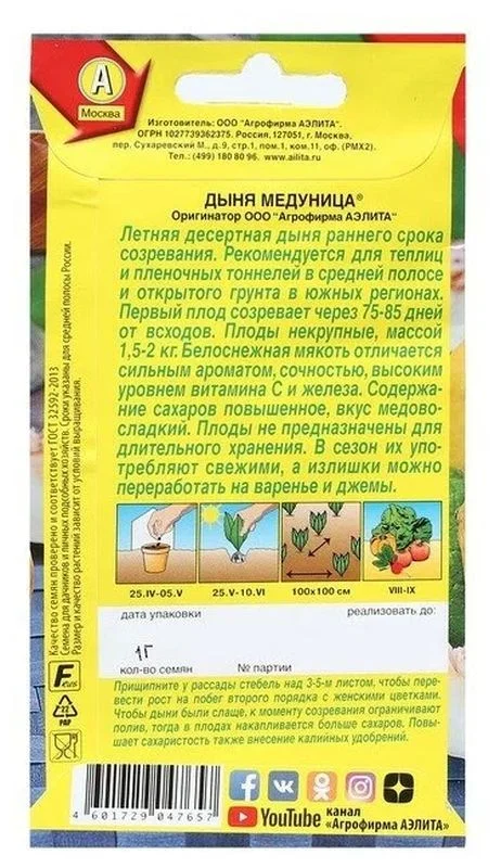 Среднеспелый сорт (период от полных всходов до первого сбора плодов 100-105 дней), для открытого грунта и пленочных теплиц. Плоды овальные, гладкие, массой 1,8-2 кг. Мякоть белая, плотная, нежная, очень ароматная и сладкая. Благодаря повышенному содержанию сахаров, из нее получаются изумительные восточные лакомства и цукаты. Сорт устойчив к мучнистой росе, хорошо хранится и транспортируется.