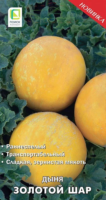 Высокая транспортабельность и лежкость плодов. Раннеспелый сорт. Период 70-80 дней от полных всходов до первого сбора плодов. Растение плетистое, главная плеть средней длины. Плод овальной формы, гладкий, желтого цвета, без рисунка, с сеткой средней плотности. Масса плода 0,5-1,3 кг. Мякоть кремовая, средней толщины, рассыпчатая, зернистая, нежная, сочная, сладкая. Сорт обладает высокой транспортабельностью и лежкостью плодов.