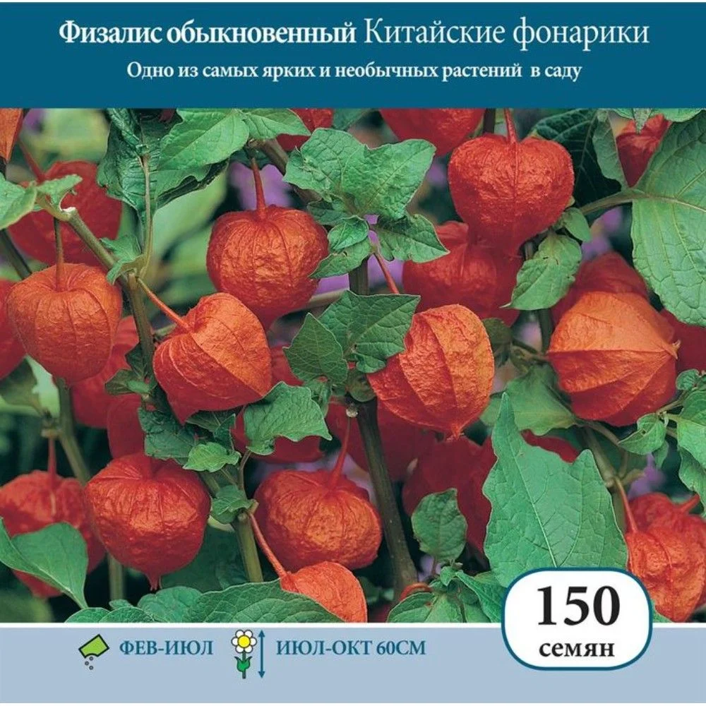 Это необычное растение выращивают ради красных “фонариков”. В конце лета срезают и засушиваю.Как выращивать Посев в закрытый грунт.Когда: С февраля по май.Где: В ящиках с посадочным грунтом.Сейте редко. Слегка присыпьте грунтом. Регулярно поливайте. Прикройте стеклом, полиэтиленом или крышкой.Температурный режим 18-21° С. Всходы появляются на 21-30 день.Уход: Когда появятся всходы, снимите крышку. Когда всходы станут большими, рассадите их по одному в горшки диам. 8 см. Температурный режим 15° С. Постепенно закалите растения (избегайте морозов). В начале лета пересадите в подготовленное место с интервалом 45 см.Посев в открытый грунт.Когда: С мая по июль.Где: В открытом грунте.Как: Сейте редко с интервалом 20 см, присыпьте грунтом. Регулярно поливайте.Уход: Когда всходы станут большими, рассадите их с интервалом 45 см.Цветение: С июля по октябрь на второй год после посева.