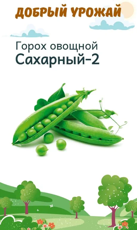 Сорт со среднеспелыми сроками созревания, обладает хорошими вкусовыми характеристиками. Стручки вырастают до 10 см в длину, в среднем 7-8 см. Сорт относится к салатным. Стручковая часть мягкая и сочная, не содержит грубых волокон, поэтому тоже употребляется в пищу. Плоды ярко-зеленого цвета, гладкие и ровные. Бобы поспевают через 2-2,5 месяца после всходов.Выращивание гороха Сахарный-2 не составит особого труда, в уходе растение неприхотливо. Культура хладостойкая, не боится сильных понижений температур, но и растет в такую погоду медленно.Высевать культуру лучше всего в землю, где росли картофель, капуста, тыквы, помидоры. А после гороха почва становится благоприятной для всех видов овощных культур. При посадке почва должна быть достаточно влажной. Высев семян производится в начале мая. Схема посадки – 15х30 см, на глубину не менее 4 см.Культура хорошо развивается при достаточном освещении на легких некислых почвах. Растение требует обильного полива, рыхлой почвы и регулярной прополки. Горох не любит свежих органических удобрений, его нужно подкармливать азотом, фосфором и калием. При достижении посадками высоты 10 см. следует поставить подпорки-шпалеры, к ним по мере роста будут подвязываться стебли. Это защитит растение от ветра, способного сломать кусты.Для тех, кто хочет собирать несколько урожаев течение лета, можно сеять семена с конца апреля до конца июня. Растения будут расти в несколько слоев, порции гороха снимаются по мере созревания. Нельзя допускать засыхания стручков, это становится сигналом и растение начинает сохнуть. При правильном уходе урожайность может достигать 2 кг с 1 кв. метра.