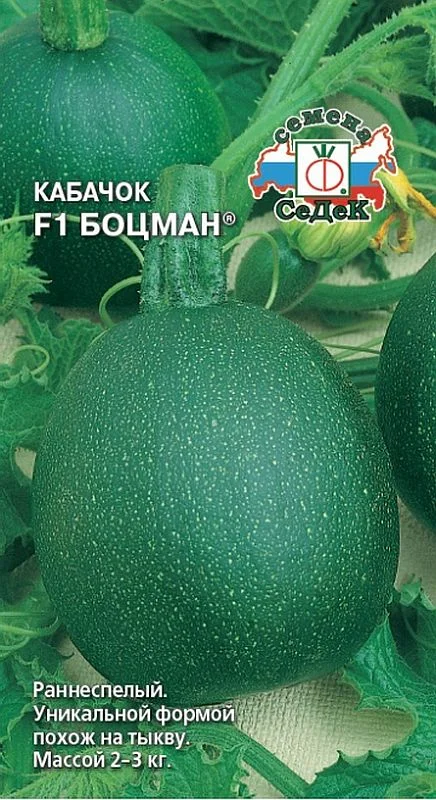 Раннеспелый (44-46 дней) гибрид. Растение мощное, кустистое, преимущественно женского типа цветения. Плоды оригинальные, округлые, темно-зеленые, с блестящей и гладкой поверхностью. Масса 2-3 кг. Ценность гибрида: очень высокая урожайность, отличные товарные и технологические  качества, оригинальная форма плодов. Урожайность 10 кг/м2. Рекомендуется для жарки, тушения, консервирования, замораживания.
