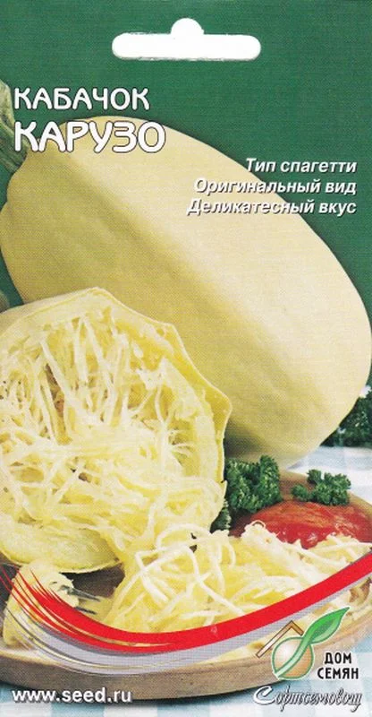 Урожайный среднеспелый сорт (57 дн. от полных всх. до первого сбора). Растение плетистое. Плод овально-цилиндрический, массой до 1 кг, с кожурой кремово-белого цвета. Мякоть средней плотности, сладкая. Мякоть зрелых плодов при запекании в целом виде разделяется на волокна, напоминающие отварные спагетти. Вкусовые качества отличные.Посев: на расаду - в конце апреля - начале мая. На постоянное место- прямым посевом на глубину 3-5 см или 25 дн. рассадой в хорошо прогретую,  плодородную, богатую органикой почву с глубоким пахотным слоем. Сажают по 1 растению на кв.м. Не  переносят заморозков.Уход: оптимальная температура для роста и развития растений 20-25 С. Рекомендуются  поливы, прополки, рыхления  междурядий, подкормки комплексными минеральными удобрениями, особенно в период цветения и плодоношения.Сбор урожая: для получения «спагетти» из кабачка плоды снимаются в стадии технической спелости.