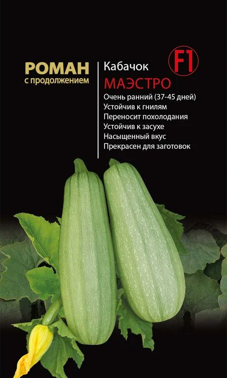 Очень ранний высокоурожайный гибрид. Отличается хорошей энергией роста и отличной лёжкостью. Благодаря устойчивости к болезням и неблагоприятным погодным условиям, гарантирует длительный сбор качественного урожая. Растение кустовое, со слабым ветвлением, открытого типа, что значительно облегчает сбор кабачков. Плоды отличного товарного вида - однородные, цилиндрические, слаборебристые, светло-зелёного цвета, среднего размера (массой до 500 грамм, длиной до 18 см). Мякоть нежная и плотная, содержание сухих веществ 5,5%, сахаров 4,2 %.Почвенную смесь раскладывают по горшочкам диаметром 8-10 см, затем по горшочкам раскладывают семена кабачков, заглубляют их на 3-4 см и накрывают емкости пленкой или стеклом. Посадка кабачков на рассаду осуществляется за 3-4 недели до момента высадки их в открытый грунт. На 1 м² нужно выращивать не более 3 растений кабачка. Схема посадки кабачка — 70х50 см. Перед посадкой в каждую лунку кладут немного золы и перегноя, перемешивая их с почвой, затем высаживают рассаду с комом земли, заглубляя ее по семядольные листья, добавляют в лунку грунт, трамбуют его и поливают.Полив кабачков осуществляют в вечернее время хорошо прогретой на солнце водой. Лить воду нужно под корень, а чтобы не сгнили зреющие кабачки, подложите под них что-нибудь, что не намокает – доску, кусок шифера.Куст дает урожай на 40-41 день после высадки в открытый грунт. На кусте одновременно созревают 3-5 плодов. Урожайность составляет 7-11 кг/м2.