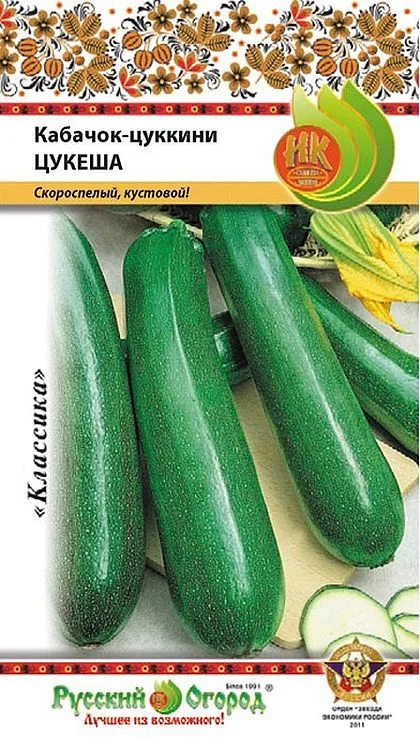 Любителям свежих плодов группы цуккини непременно понравится вкусный, полезный и урожайный кабачок Цукеша. Купить семена этого компактного сорта могут даже новички, ведь эта овощная культура не доставляет проблем даже забывчивым огородникам. Вид ценен своей неприхотливостью. Он скороспелый, вызревает всего за 41 – 51 день, поэтому отдает хороший урожай даже в холодных регионах с коротким летом. Кабачки длиной до 40 см, весом 800-900 г, ровные, блестящие, с темно – зеленой тонкой крапчатой кожурой, хрустящей белой мякотью. Их большое достоинство в хорошей лежкости. Собранный урожай может храниться в первозданном виде до 2-х, а иногда и 3-х месяцев. Всю зиму он тоже сможет пролежать, но в центре мякоти образуется пустота, а кожура загрубеет. Чтобы получить как можно больше цуккини на консервацию и приготовление, следует вовремя срывать созревшие, не перерощенные овощи, тогда молодых завязей образуется гораздо больше. Если на вашем участке мало места, этот сорт подойдет вам идеально – он не плетистый, растет очень компактно. При должном уходе, с 1 квадратного метра можно получить 8 – 12 кг овощей.