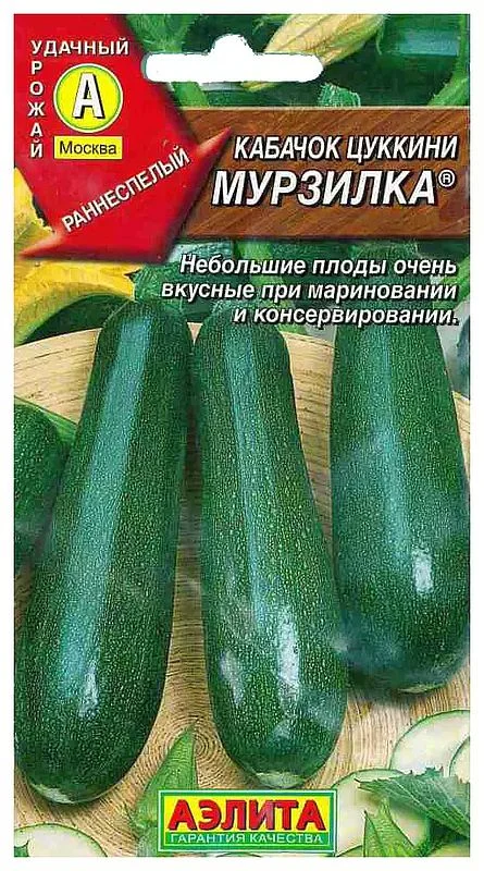 "Ранний сорт, вступает в плодоношение на 40-45 день от всходов. Образует компактные, кустовые растения, насыщенные женскими цветками. Формирует цилиндрические плоды средних длины и диаметра, с тонкой, темно-зеленой кожурой, массой 0,6-1,0 кг. Мякоть плода белая, плотная, сочная, с богатым комплексом витаминов, полезных минеральных солей и других биологически активных соединений. Урожайность – 7-9 кг/м2. Сорт хорошо переносит пониженные температуры воздуха. Предназначен для
