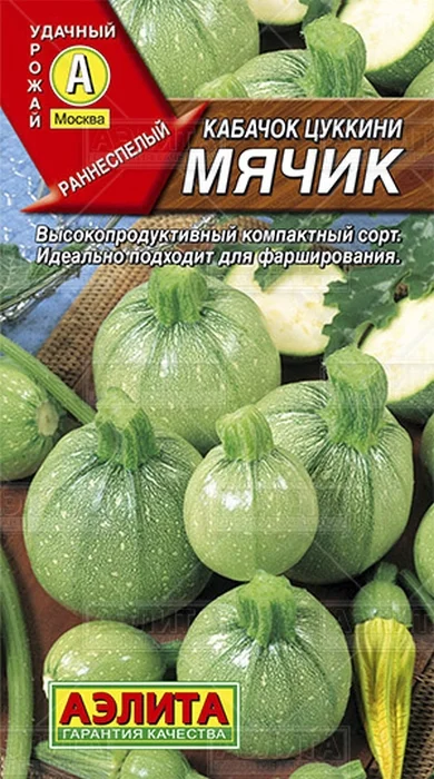 Раннеспелый цуккини с необычными сферическими плодами. Вступает в плодоношение через 50-55 дней от появления всходов. Формирует кустовые растения компактной полушаровидной формы. Сорт холодостойкий и чрезвычайно плодовитый. На смену убранным плодам в центре куста постоянно образуются новые завязи. Такой природный конвейер работает непрерывно до заморозков. Вкусные и нежные плоды массой 100-150 г идеально подходят для фарширования. Они богаты солями калия, пектином, витамином С. Плоды можно снимать и более крупными, массой 0,8-2 кг. Урожайность достигает 15 кг/м 2 .