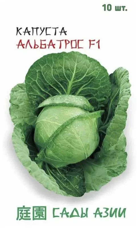 Невероятно белоснежная сочная мякоть!Гибрид 100-110-дневного срока созревания. Формирует крупные головки весом от 3-5 кг. При разрежённой схеме посадки гибрид способен достигать веса 8 кг и более без потери плотности кочана.Отличается невероятно белоснежной сочной мякотью, высокой плотностью кочана и короткой кочерыжкой. Головки округлые, голубовато-зелёного цвета с выраженным восковым налётом. Благодаря плотным укрывным листам гибрид долго стоит в поле и не растрескивается при перезревании. Ярко-белая внутренняя окраска, плотность и сладость мякоти делают Альбатрос F1 идеальным гибридом для традиционного консервирования. Способен к среднепродолжительному хранению. Норма посадки — 2-3 растения на м2.Семена японской фирмы Nong-Woo-Bio.Семена обработаны тирамом. Не требуют замачивания.