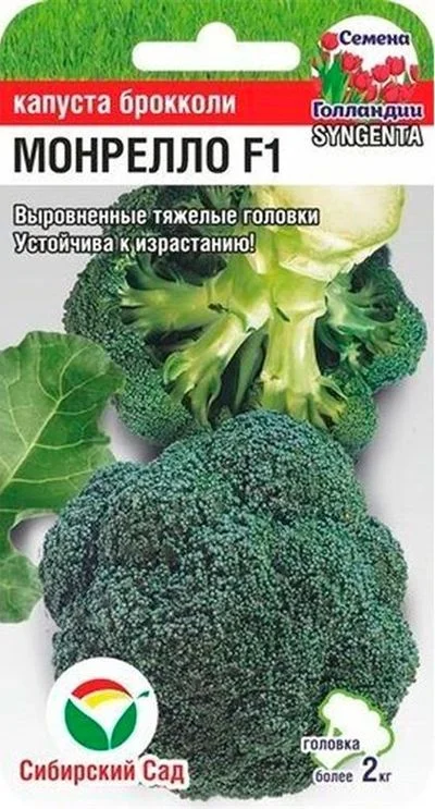 Выровненные тяжелые головки.Устойчива к израстанию!Среднеспелый гибрид. Созревает через 100 дней от высадки рассады. Головки плотные, тяжелые, в среднем 2 и более кг. Не перерастают на корню, что позволяет длительное время использовать свежую брокколи. Хорошо хранится.