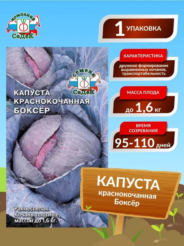 Раннеспелый (95-110 дней) сорт. Кочаны округлые, фиолетово-красные, массой до 1,6 кг, очень плотные, с хорошей внутренней структурой. Покровные листья с восковым налетом серебристого цвета. Ценность сорта: дружное формирование выравненных кочанов, транспортабельность, пригодность для непродолжительного хранения. Рекомендуется для употребления в свежем виде и переработки.