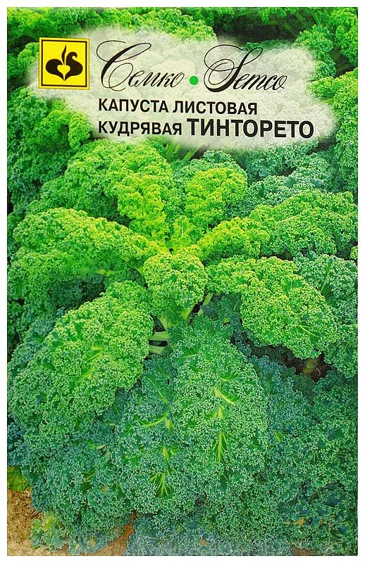 В смесь капусты листовой Тинторето Скарлет Кале входят ранние сорта. От всходов до хозяйственной годности в фазе семядольных листьев 6-7 дней. Семядольные листья зелёные, гофрированные. Окраска черешков двух сортов смеси салатовая и фиолетовая. Вкус зелени освежающий, пикантный с лёгкой горчинкой. В её составе много белка, все незаменимые аминокислоты, витамины А, С, группы В, К и РР, кальций, магний, микроэлементы, а также сульфорафан, обладающим антиканцерогенным и антибактериальным эффектом и другими полезными свойствами. Одна из лучших культур для диетического питания. Семена тёмно-коричневые.