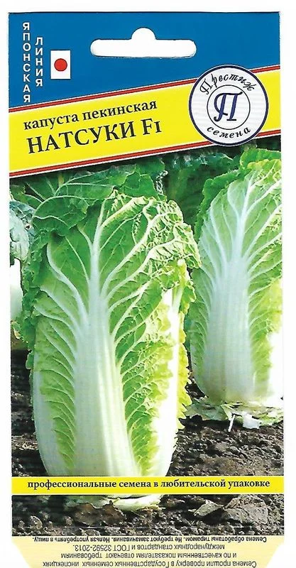 Ультраранний гибрид пекинской капусты. Срок его созревания составляет 40-45 дней от высадки рассады. Натсуки F1 - уникальный гибрид по размеру, скороспелости и потребительским свойствам кочана, может быть использован для производства миникочанов. Кочаны красивой цилиндрической формы, средней массой 0,4-1 кг. При этом возможна уборка кочанов массой от 200 гр. Размер кочана регулируется густотой посадки - она может варьироваться от 100 до 200 тысяч растений на 1 га.Натсуки идеально подходит для выращивания в летне-осеннем периоде, так как отличается хорошей устойчивостью к жаре. Кочан зеленый снаружи, желтый внутри, листья ровные, без шипов.Продукция предназначена для свежего потребления и непродолжительного хранения.