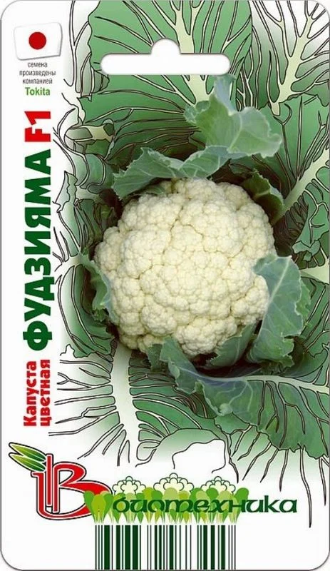Капуста цветная Фудзияма F1 – японский сорт, отличающийся высокими показателями длительности хранения. Белые головки имеют приятную, округлую форму, соцветия плотно прилегают друг к другу. Среднеранний гибрид, стойкий к заражению черной гнилью, за 60-65 дней приносит плод весом 1,2-1,5 кг.
