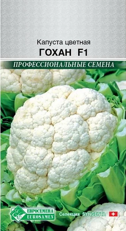 Гохан F1-новинка в сегменте цветных капуст! Овощ полезный, содержит множество витаминов и минеральных веществ, рекомендован к употреблению людям разного возраста. Его часто используют в детском питании и для приготовления диетических блюд, а также для заморозки. Это перспективный, адаптированный и высоко устойчивый гибрид среднего срока созревания с отличной урожайностью для культивации и уборки в открытых грядках в течение лета и начала осени, отличающийся высокой жаростойкостью. Вегетационный период 75-85 дней. У данного сортового гибрида хорошо выражена способность к самоукрыванию, благодаря чему кочаны не желтеют и не теряют своих товарных качеств под палящими лучами солнца. Средний вес головки 2,5 кг, отличается высокими вкусовыми характеристиками и радует садоводов- огородников белоснежными вкусными плодами, зная и соблюдая правила агротехники растения, получить хороший урожай сможет каждый.