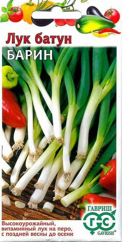 Барин (Лук батун) Сорт среднего срока созревания. Листья сочные, светло-зеленые, долго не грубеют, с высоким содержанием витаминов и микроэлементов. Вкус приятный, слабоострый. Выращивают прямым посевом в открытый грунт ранней весной, в рядки, на глубину 1,5-2,0 см. Расстояние между рядками 30 см. Для непрерывного получения зелени посевы повторяют. Урожайность до 1,5 кг/м2. Масса листьев 15-25 г.