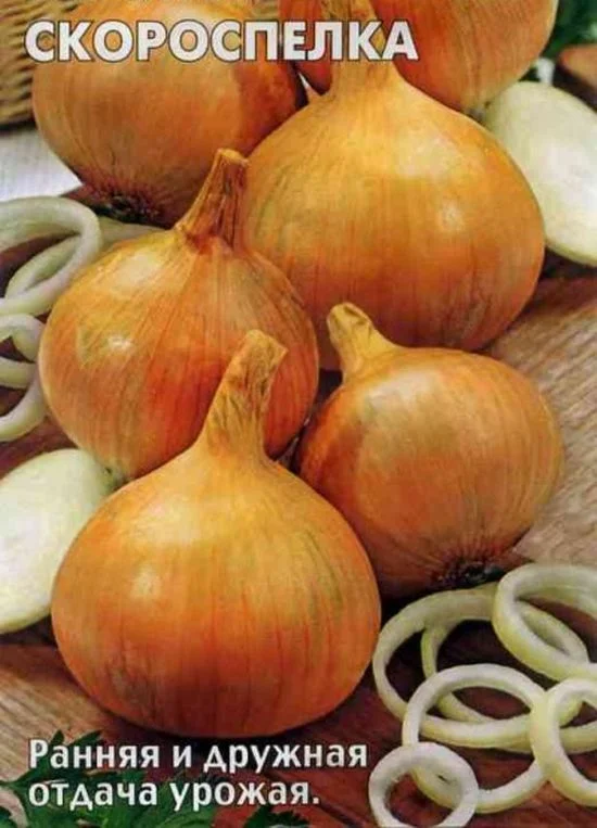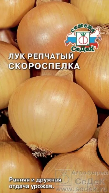 Скороспелый (80-90 дней от всходов до полегания пера) сорт. Луковицы округлые, плотные, с тонкой «шейкой», массой 150-250 г. Сухие чешуи желто-золотистые, сочные – белые. Вкус полуострый. Урожайность 4-6 кг/м2 . Для получения крупных луковиц из семян, выращивается через рассаду. Ценность сорта: устойчивость к болезням, неблагоприятным условиям, раннее получение урожая. Рекомендуется для употребления в свежем виде и всех видов кулинарной переработки.