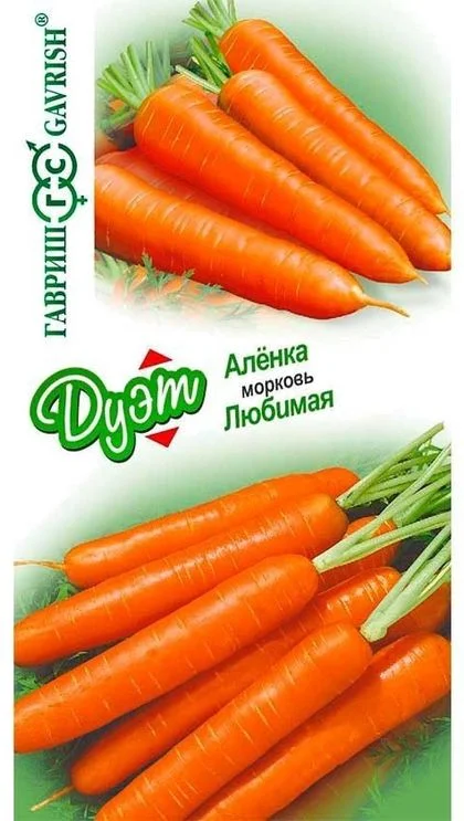 Морковь Аленка: Позднеспелый сорт (сортотип Берликум). Корнеплод длинный, цилиндрический, с тупым кончиком, массой 120-190 г. Сердцевина и кора оранжевые. Мякоть высокой плотности, сочная, очень вкусная. Рекомендуется для переработки и хранения. Сорт ценится за стабильную урожайность и высокое содержание каротина. Морковь Любимая: Урожайный ранний сорт отлично подойдет для получения пучковой продукции, кулинарной переработки и хранения. Корнеплоды цилиндрические (сортотип Нантская), оранжевые, длиной 14-16 см и массой до 160 г, почти полностью погружены в почву, не растрескиваются. Мякоть сочная, нежная, с высоким содержанием витаминов и сахара. Сорт устойчив к цветушности.