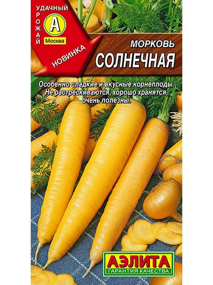 Среднеспелый сорт моркови с красивыми, ровными корнеплодами эффектного лимонного оттенка.Но не только яркая внешность выделяет его среди конкурентов, а завидный вкус и незаменимая польза для здоровья.Урожай созревает через 100-110 дней от всходов.Средняя масса корнеплодов 120-150 г (отдельные до 200 г).Мякоть особенно сладкая и вкусная, богата лютеином (для зрения) и ксантофиллом (против рака), сердцевина нежная. Сорт устойчив к цветушности и растрескиванию корнеплодов.Подходит для свежего употребления, домашних заготовок и хранения.Морковь предпочитает плодородные почвы легкого механического состава.Недопустимо внесение навоза.До появления всходов по севы рекомендуем укрыть пленкой для сохранения оптимальной влажности почвы.С развитием двух настоящих листочков растения прореживают.Второе прореживание проводят, когда корнеплоды достигнут диаметра 1 см.