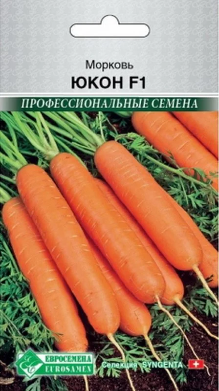«Юкон» - раннеспелый (100-110 дней от всходов) гибрид от компании Syngenta. Корнеплоды цилиндрические, тупоконечные, длиной 18-20 см, массой 80-160 г, с оранжевой корой и сердцевиной превосходного вкуса. Гибрид предназначен для свежего потребления и всех видов переработки, не длительного хранения, для рынка свежей продукции.