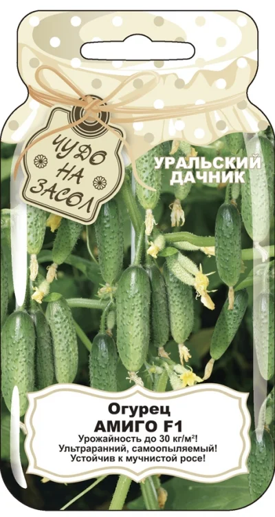 Невероятно урожайный, ультраранний, самоопылямый гибрид, который подходит для выращивания и в закрытом, и в открытом грунте. Зеленцы цилиндрической формы, среднебугорчатые, белошипые, длиной 10-12 см. Вкусовые характеристики отличные: огурцы сочные, сладкие, без горечи. Сорт ценится за высокую урожайность, превосходные товарные качества плодов и повышенную устойчивость к комплексу болезней культуры. Использование универсальное: в свежем виде, для маринования и засолки. Урожайность высокая — 30 кг/м². Огурцы выращивают, высевая семенами в грунт или через рассаду. Для получения рассады семена высевают в конце марта - начале апреля в ёмкости, на глубину 1-2 см, оставляя посевы при температуре 25 градусов. В фазе семядолей рассаживают по горшкам. Рассаду высаживают в грунт, когда минует угроза заморозков, в фазе 2-3 настоящих листьев. Семенами огурец высевают в конце мая. Глубина заделки семян — 1-1,5 см. Посевы рекомендуют укрыть плёнкой. Схема посадки — 60x15 см. Для отличных урожаев растения лучше поливать тёплой водой, подкармливать раз в 2 недели, полоть, рыхлить. Помните, что нерегулярный сбор плодов снижает урожайность!