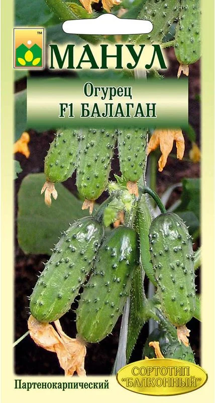 Скороспелый партенокарпический корнишонный пучковый гибрид сортотипа Балконный, преимущественно женского или женского типа цветения. Предназначен для выращивания в весенне-летнем обороте на балконах, верандах, лоджиях, в весенних теплицах и открытом грунте. Ветвление слабое; боковые побеги короткие, детерминантного типа. В узлах формируется от 2-3 до 4-6 и более завязей. Зеленцы овально-веретеновидной формы, без ручки, интенсивно-зеленого цвета с продольными светлыми полосками средней длины, с глянцевой поверхностью. Зеленцы короткие, длиной 8-10 см, диаметром 3,0-3,5 см, массой 80-90 г., плотные, хрустящие. Частота расположения бугорков средняя, бугорки средней величины. Вкусовые качества свежих и соленых зеленцов высокие. Гибрид устойчив к оливковой пятнистости, вирусу обыкновенной огуречной мозаики, мучнистой росе, толерантен к ложной мучнистой росе.Плотность посадки в теплицах 2,5-3 раст./м2, в открытом грунте 4-5 раст./м2.