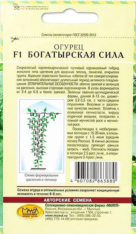 Скороспелый партенокарпический пучковый корнишонный гибрид женского типа цветения для весенних теплиц, тоннелей, открытого грунта. Хорошее отрастание боковых побегов (II тип саморегулирования ветвления) обеспечивает длительный период активного плодоношения. ОТЛИЧИТЕЛЬНЫЕ ОСОБЕННОСТИ: обилие завязей и зеленцов на растении, высокая стартовая партенокарпия. В узлах формируется от 2-4 до 6-8 и более завязей. Зеленцы овально-цилиндрической формы, длиной 8-13 см, диаметром 3,2-3,5 см, с часто-средним опушением. Вкусовые и засолочные качества высокие. Устойчив к оливковой пятнистости, вирусу обыкновенной огуречной мозаики, толерантен к ложной мучнистой росе и мучнистой росе.Плотность посадки в теплицах 2,5 раст./м кв., в открытом грунте 3-5 раст./м кв.