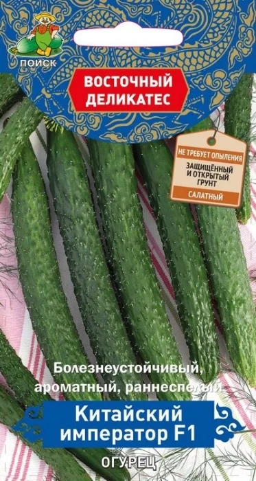 Партенокарпический, раннеспелый гибрид для выращивания в пленочных теплицах и открытом грунте.  Период от всходов до сбора урожая 42-45 дней. Плод удлиненно-цилиндрический, длиной 37-40 см, диаметром 5,0-5,5 см, массой 350-400 г, равномерной темно-зеленой окраски, блестящий, крупнобугорчатый. Гибрид устойчив к мучнистой росе, пероноспорозу, фузариозу и высоким температурам.Для употребления в свежем виде и в салатах.
