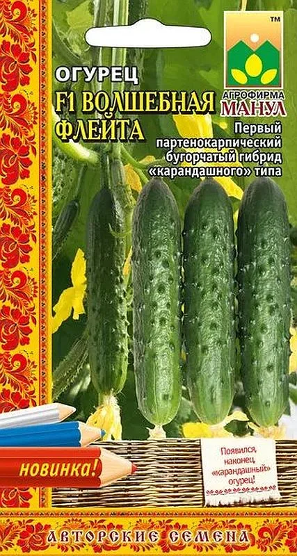 F1 Волшебная флейта – первый партенокарпический бугорчатый гибрид «карандашного» типа: ровные, не толстые зеленцы хорошо подходят для вертикальной укладки в банку «под крышку» при консервировании. После достижения товарного размера зеленцы могут несколько дней не утолщаться, оставаясь тонкими. Гибрид устойчив к мучнистой росе, оливковой пятнистости, вирусу обыкновенной огуречной мозаики, толерантен к ложной мучнистой росе.Плотность посадки в теплицах 2,5 раст./м2, в открытом грунте 3-4 раст./м2.