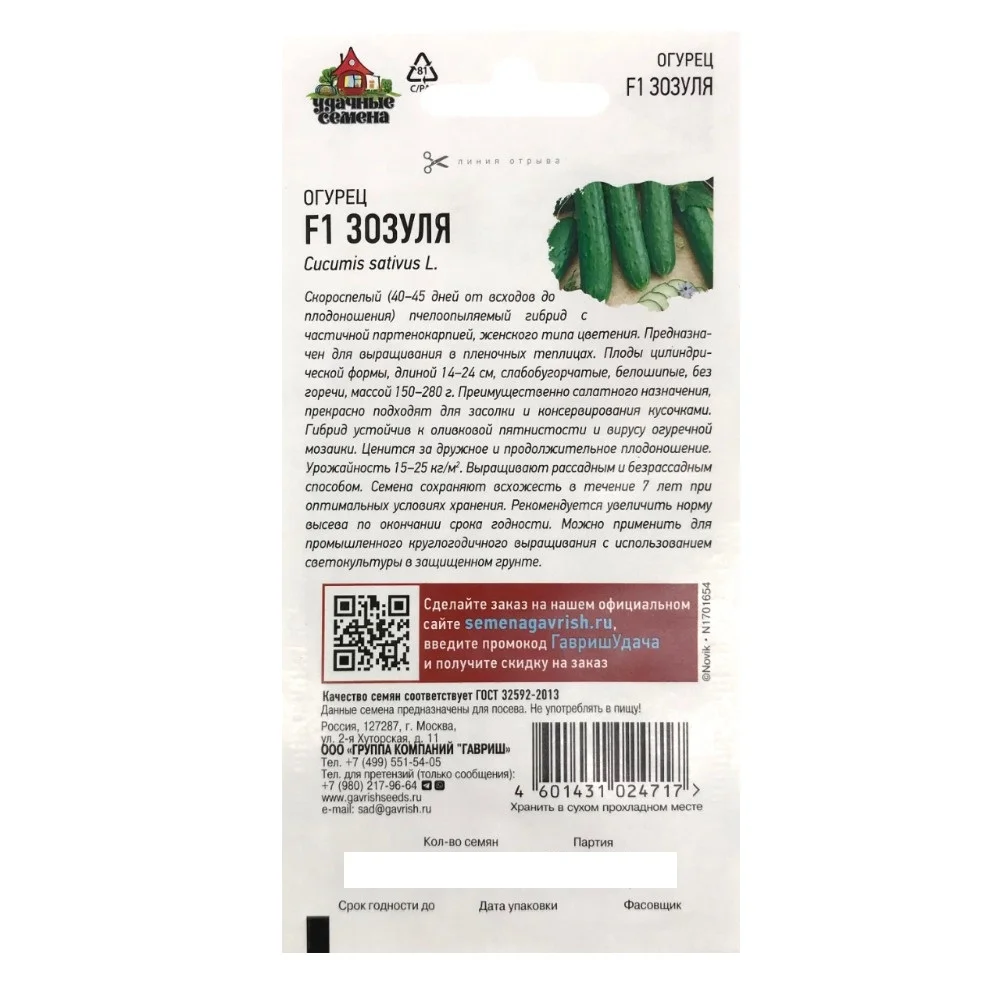 Огурец F1 Зозуля Серия Удачные Семена