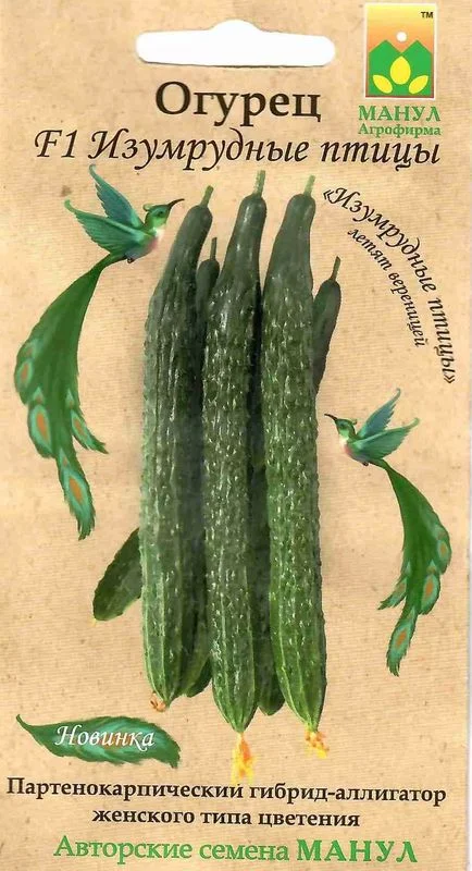 Партенокарпический скороспелый гибрид-аллигатор женского или преимущественно женского типа цветения для весенних теплиц и открытого грунта на шпалере. Растения сильнорослые, со слабым ветвлением. В узлах формируется по 1-2 завязи. Зеленцы со средне-частым опушением, не колючие, интенсивно-зеленой окраски, длиной 35-40 см. Зеленцы вкусны как в свежем, так и в малосольном виде. Гибрид обладает повышенной жаростойкостью, устойчив к большинству заболеваний