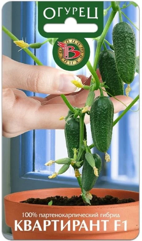 Специальный гибрид для выращивания в комнате. Квартирант F1 - 100% партенокарпический гибрид с женским типом цветения. Может выращиваться круглый год в зимне-весенний, весенний и летне-осенний культурообороты. При посеве в весенне-летний период - 48-52 дня до первого сбора плодов. Растение очень компактное, с маленькими листьями, не обрастает боковыми побегами. Плоды многочисленные, очень маленькие - 5-8 см, мелко бугорчатые, хрустящие. Генетически свободен от горечи. Предназначен для потребления в свежем виде.