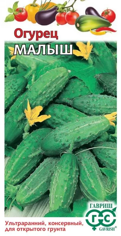 Ультраскороспелый (41-43 дня от полных всходов до вступления в плодоношение) пчелоопыляемый сорт открытого грунта. Растение кустовое, компактное (плеть длиной 40 см), слабоветвистое. В пазухе листа закладывается до 6 завязей. Зеленец с крупными, редкими бугорками, длиной 9-10 см, массой 80-115 г. Отличается дружной отдачей урожая, отличным вкусом, используется в свежем виде и для консервирования. Посев на рассаду – в начале мая. Высадка в грунт – в конце мая - начале июня в фазе двух-трех настоящих листьев. Посев в открытый грунт проводится в конце мая – начале июня. Схема посадки: 40х40 см. Урожайность 3,4-3,9кг/растение