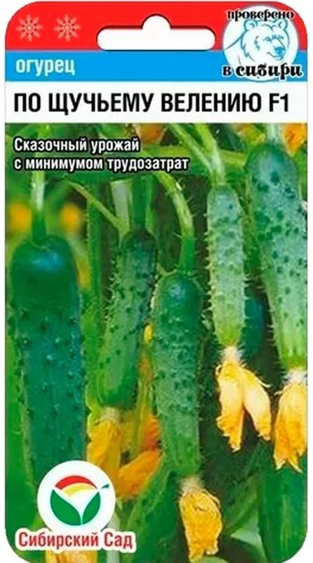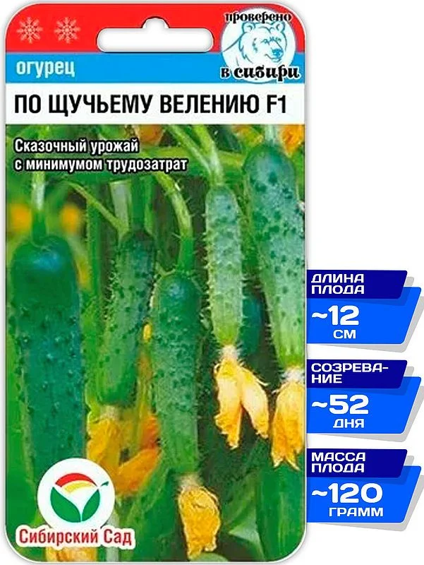 Способен одарить сказочными урожаями при минимальных трудозатратах. Среднеранний партенокарпический гибрид женского типа цветения. Не требует формирования, с пучковым образованием завязей. Зеленец цилиндрический. Крупнобугорчатый, темно-зеленый с полосами, длиной 10-12см.